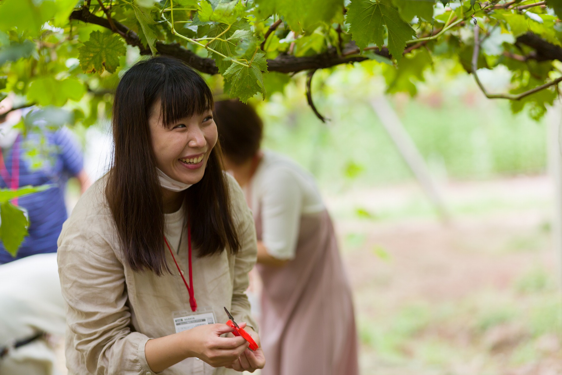 今回のイベントでは、そんな「山口農園」さんのぶどう栽培やワインづくりにかける想いを聞きながら、ぶどう収穫。